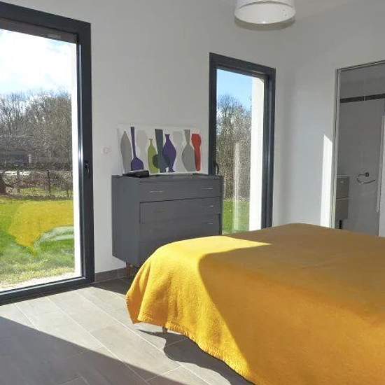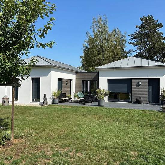 Maison type 4 avec jardin a veigne maison neuve de plain pied avec de très belles prestations à 15 minutes au sud de tours dans un environnement verdoyant calme et sécurisé. Maison à très faible coût énergétique avec chauffage par pompe à chaleur. Vaste pièce à vivre avec espace cuisine aménagée, arrière cuisine, dégagement, 3 chambres avec chacune son rangement et dont une avec salle de douche à l'italienne, salle de bains, wc vaste terrasse sud et autre terrasse au nord pour les journées chaudes. Vaste garage carrelé terrain clos et arboré...