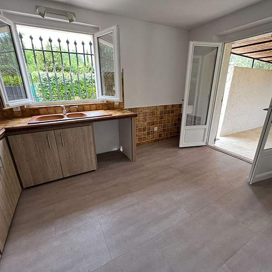 Une villa de quatre pièces principales de 109,00m², de plain-pied, se décomposant comme suit : Hall d'entrée, cuisine indépendante aménagée donnant sur terrasse couverte, salle à manger/salon, deux WC indépendants, salle de bains, trois chambres dont deux avec salle d'eau. Chauffage et production d'eau chaude individuels électriques. La villa est édifiée sur un jardin clos d'environ 1000 m² et dispose d'une cour à usage de stationnement. Loyer : 2168 euros Prov. sur charges : 44 euros Dépôt de garantie : 2168 euros Honoraires charge locatair...
