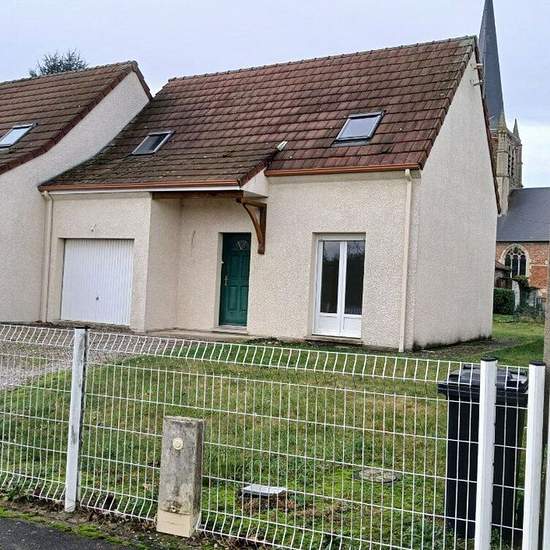 Maison À Louer. Pavillon récent mitoyen d'un côté comprenant une grande entrée, grand séjour avec cuisine aménagée en retour, pièce lingerie, toilettes. A l'étage palier desservant trois chambres, une salle de bains avec toilettes. Garage accessible par la cuisine. Terrain clos.