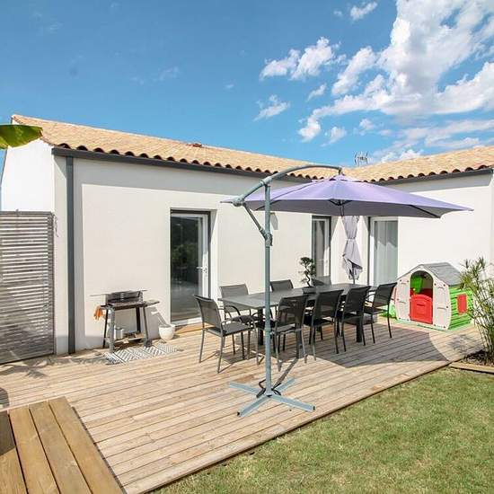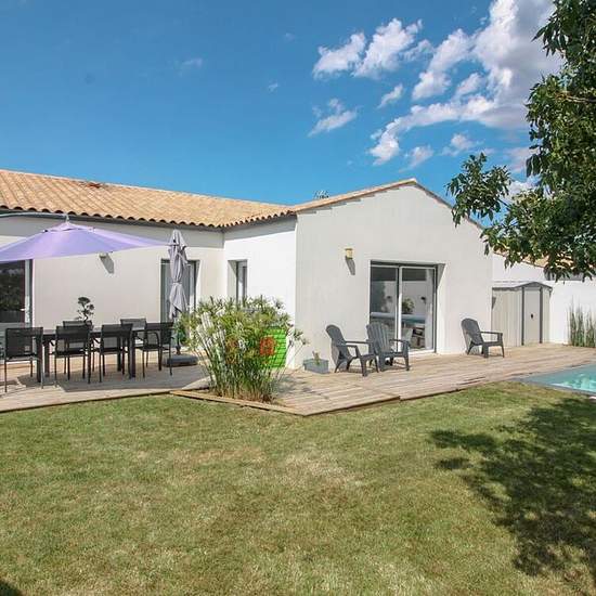 Maison récente à louer, avec garage, jardin et piscine.. Exclusivité Orpi ! Située à YVES bourg (17340), à 15 minutes de LA ROCHELLE et à 5 minutes de CHATELAILLON-PLAGE, cette charmante maison récente de 2017 de 95 m² habitables de plain-pied est très lumineuse et fonctionnelle. Elle comprend : une entrée, une grande pièce de vie avec cuisine ouverte équipée (le tout environ 47m²) ouvrant sur terrasse, dégagement desservant 3 chambres, salle de bains avec douche et baignoire, WC séparés. Garage attenant de 20,65 m² avec coin buanderie. Jard...