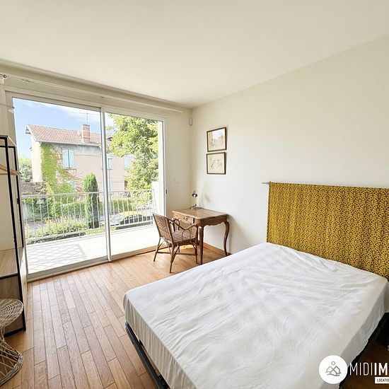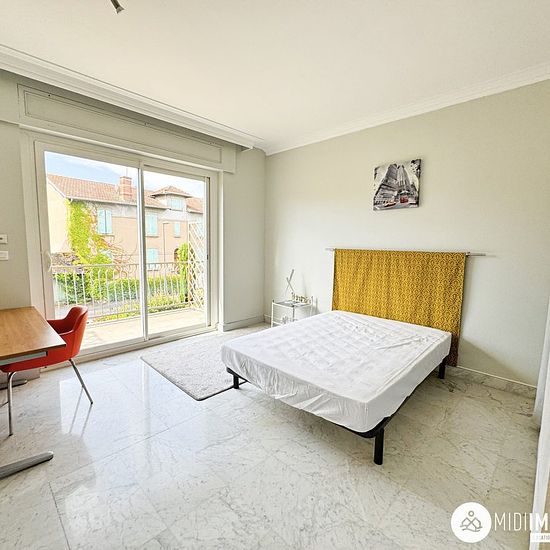 Proche du lycée Sainte Cécile - Albi Grand appartement pour colocation. Il est composé d'une grande cuisine entièrement aménagée et équipée. Vous trouverez un coin nuit avec quatre chambres dont trois avec balcon. L'appartement dispose de deux salles d'eau avec WC. Une terrasse commune. Chaque chambre dispose d'un lit double, d'un bureau et d'un dressing de rangement. Les + : un garage, un local à vélos, un cellier, une buanderie, un jardin Disponible : Immédiatement Chauffage : Electrique Menuiseries : Double vitrage Loyer : 450,00 € dont p...