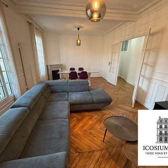Le Cabinet ICOSIUM IMMO vous propose: 5 pièces meublé de 89 M² – 3 chambres – 2 300 € CC À louer, élégant appartement de 5 pièces entièrement refait à neuf, au charme haussmannien, situé au 1er étage d’un immeuble de caractère. Il offre :• 3 chambres• Un double séjour lumineux avec cheminée en marbre• 2 salles d’eau avec toilettes• Une cuisine indépendante équipée et aménagée avec tout l’équipement nécessaire• Fibre optique installée (internet très haut débit) Volumes généreux, belle hauteur sous plafond, prestations soignées. Appartement cl...