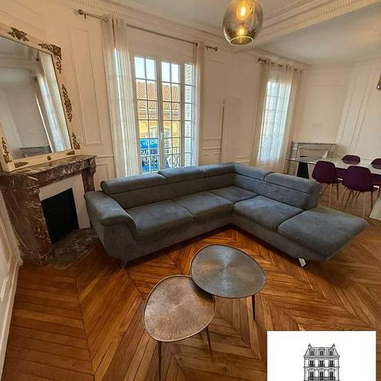 Le Cabinet ICOSIUM IMMO vous propose: 5 pièces meublé de 89 M² – 3 chambres – 2 300 € CC À louer, élégant appartement de 5 pièces entièrement refait à neuf, au charme haussmannien, situé au 1er étage d'un immeuble de caractère. Il offre :• 3 chambres• Un double séjour lumineux avec cheminée en marbre• 2 salles d'eau avec toilettes• Une cuisine indépendante équipée et aménagée avec tout l'équipement nécessaire• Fibre optique installée (internet très haut débit) Volumes généreux, belle hauteur sous plafond, prestations soignées. Appartement cl...