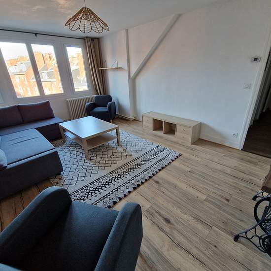 En Centre Ville d'AMIENS, situé au troisième étage (sans ascenseur). Bel appartement Type T5 de 105 m2 en location meublée et comprenant : Salle à manger avec cuisine ouverte et équipée, dégagement distibuant un salon, trois chambres, salle de bains et WC indépendant. Chauffage individuel au gaz de ville. Logement soumis à la garantie loyers impayés (GLI) « Les informations sur les risques auxquels ce bien est exposé sont disponibles sur le site Géorisques: ».