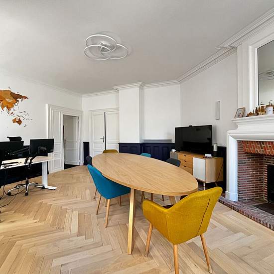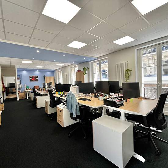 A LOUER Bureaux Place du Ralliement Au premier étage d'un immeuble, bureaux d'environs 121,74m2 à louer Place du Ralliement, composés d'une belle salle de réunion, grand pièce en open-space, un bureau fermé, cuisine indépendante aménagée et équipée avec réserve, 2 WC. Cave en dessous. Disponibles de suite