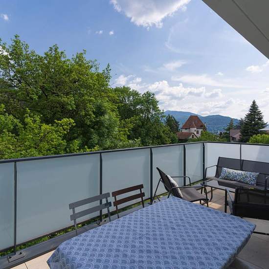 A LOUER, ce 5P+C en 2ème étage et dernier de 116 m² à ANNECY LE VIEUX situé dans une copropriété récente de standing proche de La Pesse et de l'IUT dans un cadre verdoyant et au calme. Il bénéficie de très belles prestations et d'équipements de qualité, d'une belle luminosité, de 2 terrasses et d'un balcon ainsi qu'une exposition Est/Sud/Ouest. Un garage, une place de parking et 2 caves sont rattachés à ce logement. La copropriété dispose d'un ascenseur, d'un visiophone, d'un garage à vélos et raccordement à la fibre. Cet appartement est com...