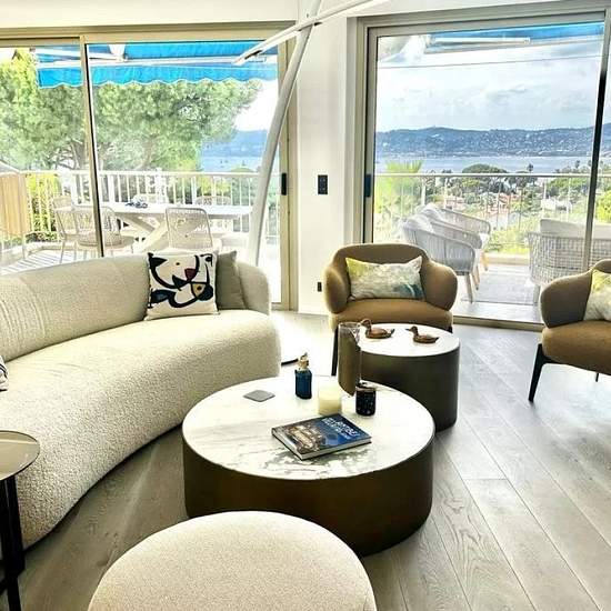 Cap d'Antibes, Appartement unique de 120 m² idéalement situé, à proximité des plages des Ondes et de la Garoupe. Vue panoramique sur la mer et Juan-les-Pins. Rénové en 2024, il se trouve dans une résidence sécurisée avec gardien, jardin, piscine. L'appartement dispose d'un salon avec TV, une salle à manger pour 6 personnes, une cuisine américaine haut de gamme (miele), et 4 chambres en suite. Profitez d'une grande terrasse équipée pour 8 personnes, salon de jardin, transats. Climatisation, Wi-Fi. Afficher le téléphone