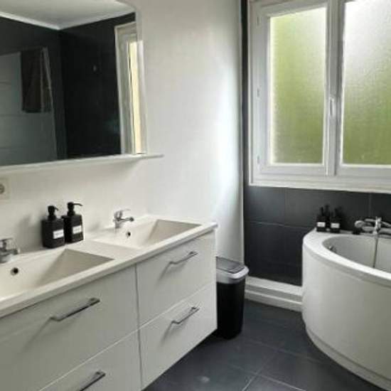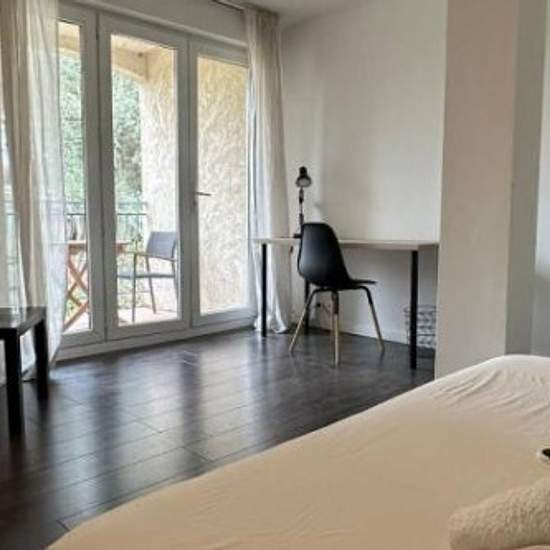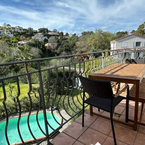 Dans un quartier résidentiel, au calme absolu, entouré de verdure, magnifique appartement aux grands volumes, à 2km de la mer à pied, à 10 minutes des plages de sable et de la vieille ville d'Antibes. Cet appartement design de 120m2 se trouve au 1er étage d'une villa, composée de 3 appartements avec jardin privatif et piscine commune. - Vaste séjour - Cuisine américaine équipée - 4 chambres - 1 Salles de bain - 1 salle de douche - 1 WC indépendant - 3 balcons - 2 parkings privatifs - Jardin privatif équipé avec table et chaises de jardin, tr...