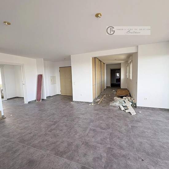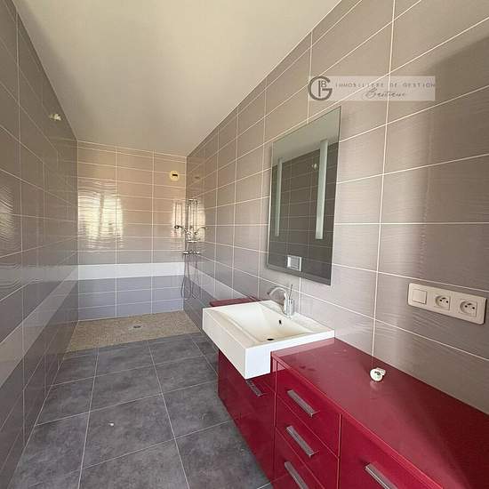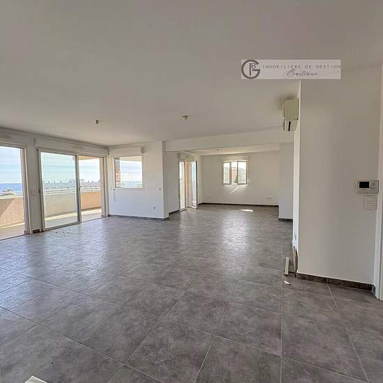 BASTIA SUD: Grand T3 de 142 m2 avec grande terrasse dans une résidence récente et sécurisée proche de l'Alb'oru et hôpital. Il se compose d'une entrée, un grand salon- séjour, une cuisine équipée (four, plaque, hotte) deux salle d'eau, 3 wc, cellier, 2 chambres, placards L'appartement possède deux entrées indépendantes. Idéal pour bail mixte. climatisation, parking, terrasses. A VISITER ABOLUEMENT!
