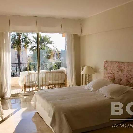 BEAULIEU S/MER – Cœur de Ville - Magnifique appartement à louer meublé dans une résidence de standing, au calme, nichée dans la verdure. L’appartement de 116m² est traversant et parfaitement configuré. Un vaste séjour, lumineux et ensoleillé ouvre sur une profonde terrasse orientée sud avec un aperçu mer. La cuisine est indépendante et totalement équipée, grande chambre parentale avec salle de bain et accès terrasse. Plusieurs placards, toilette séparée, 2 belles chambres au nord plus salle de douche et balcon filant. Inclus, un grand garage...