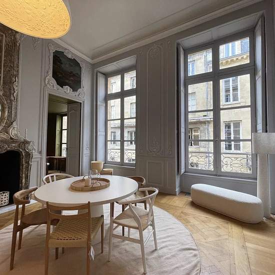 Découvrez ce somptueux appartement de réception, entièrement meublé et décoré avec raffinement par une talentueuse décoratrice bordelaise. Situé au 1er étage d’un magnifique immeuble en pierre, ce bien d’exception allie élégance, luminosité et confort moderne, idéal pour une clientèle exigeante. Description : 1er niveau : • Entrée / bureau, idéale pour un espace de travail ou d’accueil. • Grand salon ovale, baigné de lumière, offrant un cadre unique et prestigieux pour vos réceptions. • Cuisine spacieuse et entièrement équipée, ouverte sur u...