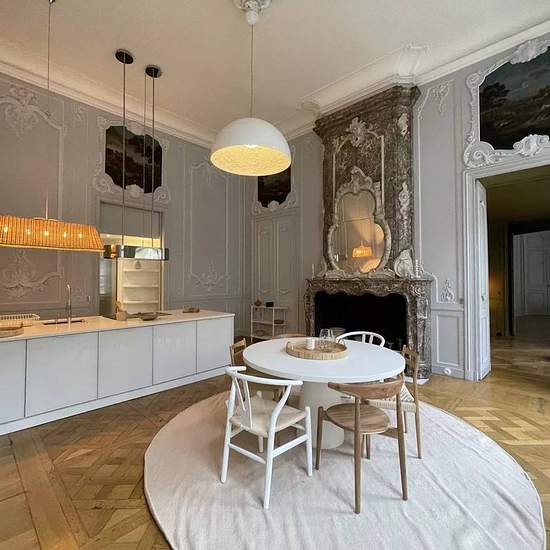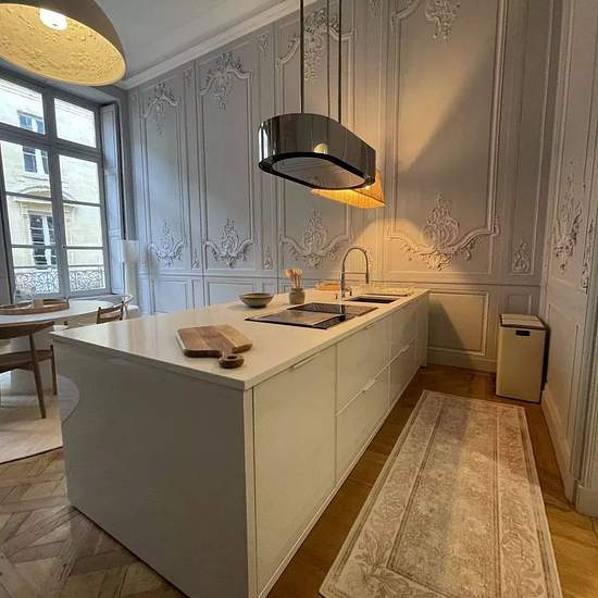 Découvrez ce somptueux appartement de réception, entièrement meublé et décoré avec raffinement par une talentueuse décoratrice bordelaise. Situé au 1er étage d’un magnifique immeuble en pierre, ce bien d’exception allie élégance, luminosité et confort moderne, idéal pour une clientèle exigeante. Description : 1er niveau : • Entrée / bureau, idéale pour un espace de travail ou d’accueil. • Grand salon ovale, baigné de lumière, offrant un cadre unique et prestigieux pour vos réceptions. • Cuisine spacieuse et entièrement équipée, ouverte sur u...