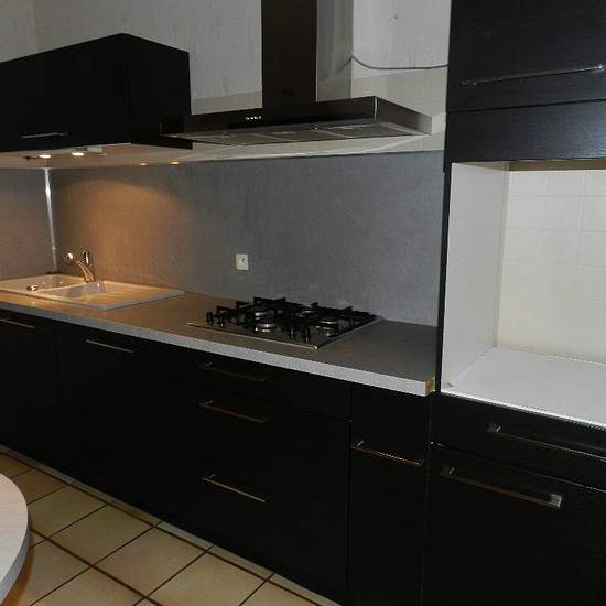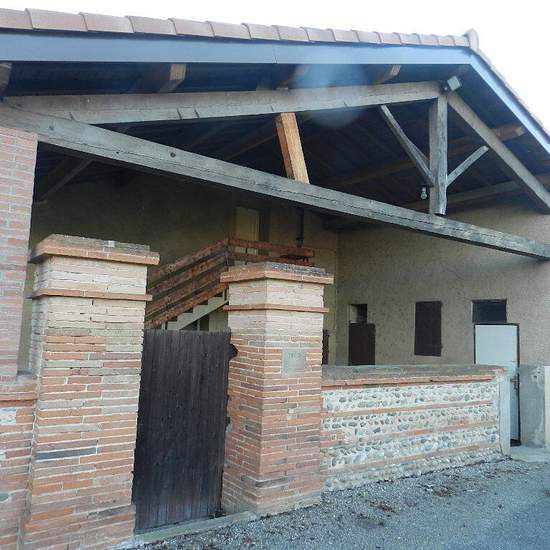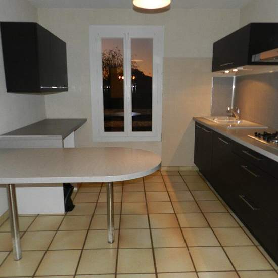 Bruguieres centre. Dans batisse ancienne, t5 de 121 m² entièrement restauré. Un hall d'entrée dessert une cuisine de 12 m² équipée en mobilier avec plaque gaz et hotte, un séjour de 29 m² avec cheminée, un wc, 4 chambres, salle de bains complète avec douche, baignoire, bidet et wc. Cellier. Chauffage gaz. Terrasse couverte à partager. Jouissance du parc. Tres calme. L'ensemble en tres bon etat. Commerces, bus, ecoles sur place. Dpe : d/ 167 - ges : d/36 libre le 1 er fevrier loyer : 800 € + 50 € de provisions sur charges (ordures ménagères, ...