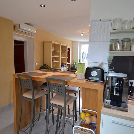 Spacieux appartement 4/5 pièces de 124m² sur 3 niveaux situé au dessus du vieux village de Contes, au calme avec une superbe vue dégagée sans vis-à-vis. Il se compose au premier niveau, d'un double séjour avec cuisine US équipée, une salle d'eau, une salle de bain, de deux chambres et au second niveau la troisième chambre. Une buanderie est notamment présente au RDC. Une grande terrasse aménagée exposée plein sud donne sur la ville de Contes et son village. Appartement climatisé Possibilité de garer 2 voitures Immeuble composé de 2 apparteme...