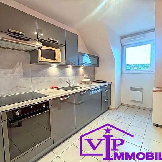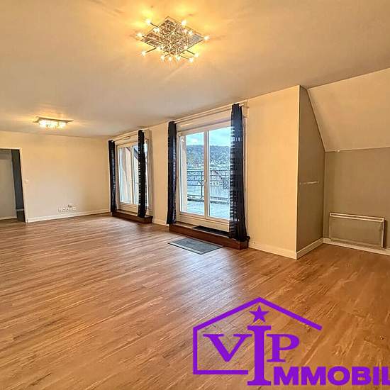 En plein coeur du centre-ville de Darnétal, situé au 3ème et dernier étage d'une copropriété (2013) avec ascenseur, appartement F5 de 93 m² vous offrant : Une entrée, une cuisine aménagée-équipée, un séjour-salon de 34 m² avec un accès à une agréable terrasse de 14 m² S/O, 3 chambres dont 1 avec une une salle de douches, un dégagement avec placard, une salle de bains, un WC indépendant. 2 places de parking privative. Chauffage individuel électrique. Huisseries en double vitrage PVC + volets roulants Charges : 130 euros mensuel correspondant ...