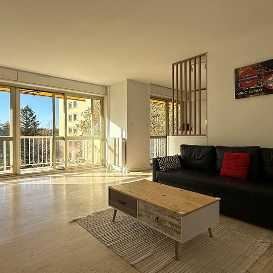 La Régie Lombard vous propose à ECULLY, dans une résidence sécurisée calme et verdoyante, idéalement situé à proximité des commerces et écoles, cet appartement entièrement meublé de type 5 d'une surface de 111m2. Situé au 5eme étage avec ascenseur, il se compose d'une entrée acceuillante avec placard, un séjour double lumineux, une cuisine séparée équipée et meublée, donnant sur un balcon, 3 chambres, un dressing, une salle de bains, une salle d'eau, et un wc séparé. Un second balcon accessible depuis une chambre complète ce bien. Vous bénéf...