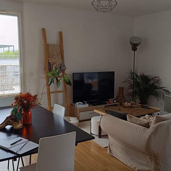 Résidence Le Carré Muscadelle 4 rue des cépages appartement au 4ème et dernier étage avec belle terrasse de 93 m² comprenant entrée avec placard, séjour-salon, cuisine, 4 chambres avec placard, salle de bain avec wc, salle d'eau, WC, belle terrasse, 2 places de parking. Les charges de 83 comprennent entretien des communs ascenseur. Dossier GLI et scellier intermédiaire. Libre le 5 décembre.