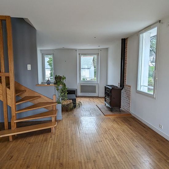 A LOUER dans le centre de Coëtquidan un appartement meublé situé au premier étage, composé d'une pièce de vie ouverte sur la cuisine aménagée et équipée, une chambre avec placards, une salle de bains, un WC, une lingerie et une véranda A l'étage : une mezzanine desservant deux chambres avec placards, une salle d'eau, un WC et une chambre avec une mezzanine au-dessus. En dépendance : une grande terrasse, une buanderie, un abri de jardin et un double carport. Appartement disponible au 27 Juillet 2026. Loyer : 1000 EUR + 88 EUR de charges mensu...