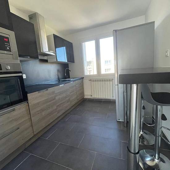 Guilherand granges - type 5 climatise avec balcons - proche ecoles commerces - * disponible de suite * un appartement climatisé type 5 de 91.87 m² en 4e et dernier étage sans ascenseur situé à guilherand-granges. Il dispose d'un salon et un séjour, une cuisine ouverte meublée et équipée (four, plaque, hotte, lave-vaisselle, micro-ondes, réfrigérateur), une loggia, trois chambres, une salle d'eau, un wc séparé, un dégagement avec placards. Deux balcons : un côté séjour et le second côté chambre. Une cave privative. Chauffage individuel au gaz...
