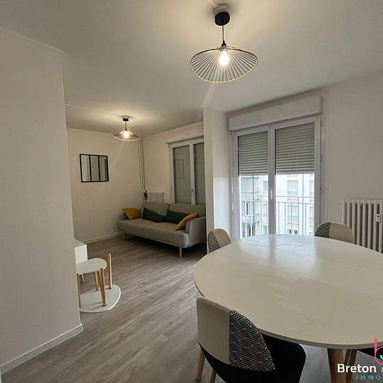 BRETON ET JEANNEAU IMMOBILIER vous propose : Un appartement meublé comprenant : hall d'entrée, salon séjour, cuisine aménagée et équipée (four, plaque, hotte, réfrigérateur, lave-vaisselle, micro-ondes) , dégagement, salle d'eau, 3 chambres (chaque chambre possède : lit, bureau et armoire) Idéal collocation. Loyer : 650Euro + 165Euro de provision sur charges (parties communes, chauffage collectif, eau froide) Dépôt de garantie : 1300Euro Honoraires de location : 650 Euro dont 195Euro de frais d'état des lieux REFERENCE : G986ER