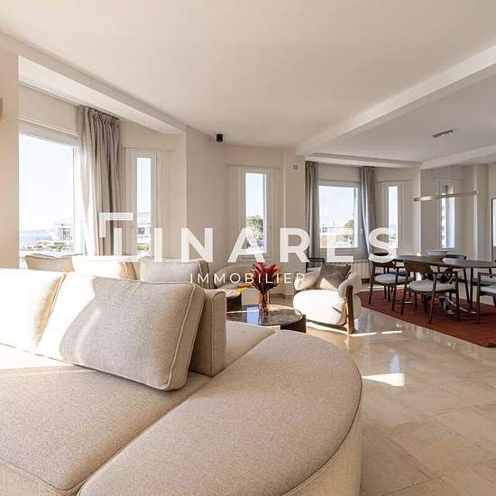 LE RIVIERA - Appartement T5 avec vue mer panoramique linares Gestion vous présente : Le RIVIERA. Dominant la Méditerranée, cet appartement d'environ 140m² offre une adresse rare, où la lumière et la mer s'imposent naturellement. Les volumes s'ouvrent sur un vaste espace de réception composé d'un salon, d'un espace télévision et d'une salle à manger réalisés sur mesure, dans une atmosphère sobre et intemporelle. La cuisine indépendante, parfaitement intégrée, s'inscrit dans un équilibre subtil entre esthétisme et fonctionnalité. La distributi...