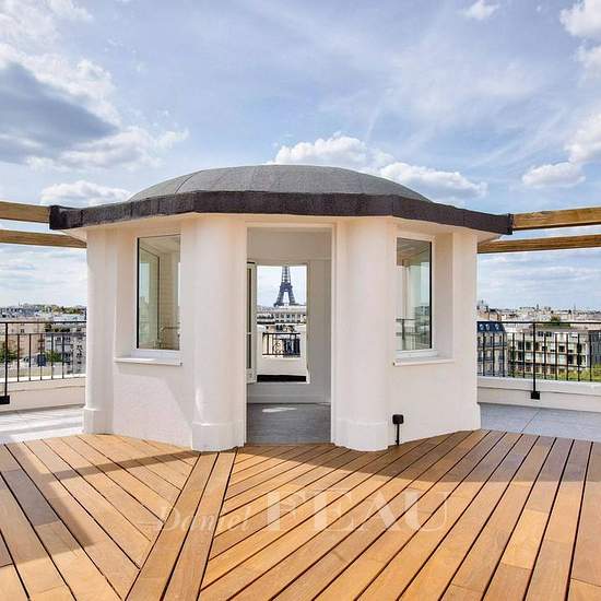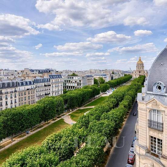 Rare à la location, aux deux derniers étages d'un immeuble de standing, gardienné et sécurisé, appartement duplex de 142 m² avec terrasse en rooftop de 102 m² offrant une sublime vue panoramique sur la Tour Eiffel, le Dôme des Invalides et les monuments parisiens, ayant bénéficié d'une rénovation complète. Il se compose comme suit : *Au septième étage : une entrée avec vestiaires, un grand séjour donnant accès à un balcon offrant une vue dégagée sur la Tour Eiffel et le Dôme des Invalides, une cuisine aménagée et semi-équipée (plaques et hot...