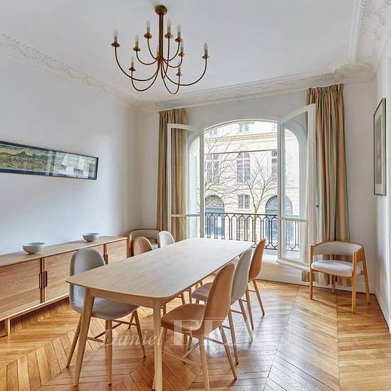A deux pas du Champ-de-Mars, au premier étage avec ascenseur d'un élégant immeuble en pierre de taille construit en 1911 sécurisé et de standing, appartement meublé en parfait état d'une surface de 110 m². Il se compose d'une galerie d'entrée, d'une double réception offrant une sublime vue sur la Tour Eiffel, d'une cuisine entièrement aménagée et équipée, d'une suite parentale sur cour avec salle de bains, d'une seconde chambre sur cour avec salle de douche, d'un bureau ou d'une troisième chambre puis de toilettes séparées. Nombreux placards...