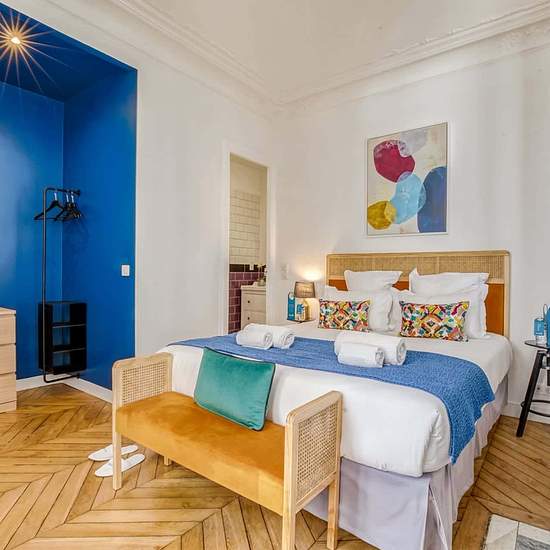[EN] The Compiegne Duplex Sweett apartment, featuring four bedrooms, is exquisitely designed to blend modern style with comfortable living, and every detail has been carefully considered by our local interior designer. The stunning decor captures the essence of charming Parisian style and provides a spacious and inviting living space. Only a few minutes from La Fayette Street, renowned for its numerous local cafes, restaurants, and shops, you will be able to explore the exciting 10th arrondissement and its many theatres. Perfect for families...