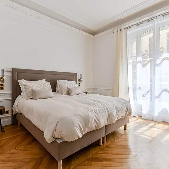 Foch / Bois de Boulogne – Climatisé, tout neuf, rénovation exceptionnelle. A deux pas de l’avenue Foch, nous vous proposons ce superbe appartement meublé Haussmannien de 137 m², entièrement rénové. Situé au 1er étage avec ascenseur, il offre tout le charme classique : parquet en point de Hongrie, moulures élégantes, cheminées d’époque et belle hauteur sous plafond. L’appartement s’ouvre sur un double séjour lumineux avec salle à manger, ainsi qu’une cuisine contemporaine parfaitement équipée accompagnée d’une buanderie. La partie nuit compre...