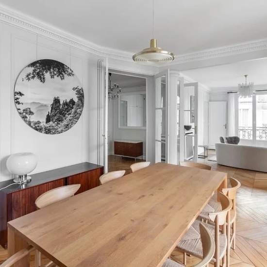 Quartier Jasmin - 75116 - Au 6ème étage avec ascenseur d'un immeuble 1900 pierre de taille de grand standing, un appartement meublé de 5 pièces - 3 chambres entièrement restauré. Mobilier neuf et contemporain, 2 salles de bains neuves et cuisine équipée. Parquet dans tout l'appartement, double vitrage. Le loyer comprend la box internet, un système d'alarme et 1h de ménage / semaine. Contacter le Afficher le téléphone