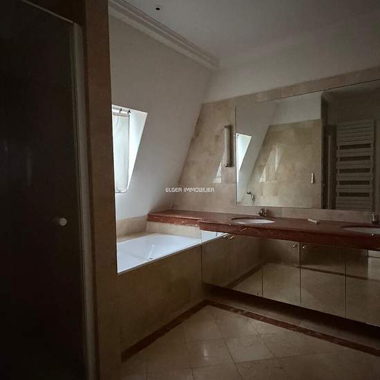 5 PIECES de 170 m2 en duplex + grand balcon aux 6ème et 7ème étages dans un bel immeuble ancien. Au 1er niveau : entrée, double séjour, grande cuisine partiellement équipée, WC invités. Au 2ème niveau, quatre chambres, salle de bains avec WC + cabine de douche, salle d'eau, WC indépendants, placards, cave. Parquet, moulures, cheminée, belle hauteur sous plafond. Clair et très ensoleillé, calme. Vis-à-vis lointain. Proche commerces et transports (M° EXELMANS). Pour renseignements et visites contactez Abbas Monia . Honoraires de 5 064 € TTC à ...