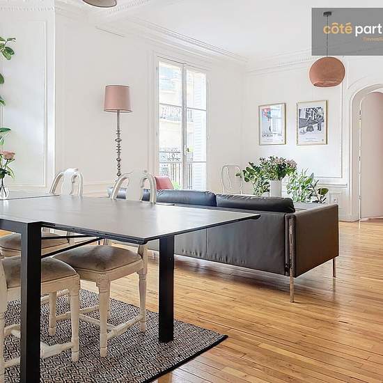 A propos de ce bien L'agence Coté Particuliers Boulogne-Billancourt vous propose ce superbe appartement familial meublé de 5 pièces de 119m² au 5eme étage avec ascenseur d'un bel immeuble haussmannien sécurisé et très bien entretenu par un gardien, situé dans une petite rue privée. Ce bien ancien, entièrement rénové avec des matériaux de qualité comprend une entrée, un vaste séjour-salon lumineux de 50,51 m² donnant sur un balcon filant, un bureau (pouvant faire une 4ème chambre), une cuisine aménagée et équipée. L'espace nuit se compose d'...