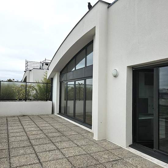 CINQ PIECES rénové de 112m² au 10ème et dernier étage avec ascenseur d'une résidence récente au 37 Quai de Seine, proche des Buttes Chaumont, des transports et commerces. Il est composé d'une entrée avec placard, un séjour donnant sur une grande terrasse plein sud, une cuisine indépendante aménagée, un dégagement avec placard, trois chambres dont deux avec placards, une suite parentale avec placard et salle de bains, une salle de bains et deux WC indépendants. Cave et parking en sous-sol. Chauffage et eau chaude individuels électriques.
