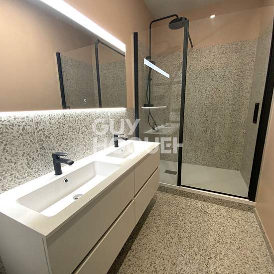 Ce logement offre un cadre de vie exceptionnel alliant le confort moderne au charme de l'ancien. Appartement spacieux de 4 pièces réhabilité dans le respect du style architectural, pièce de vie lumineuse bénéficiant de belles hauteurs sous plafonds avec accès terrasse, salle à manger avec bow-window et espace cuisine aménagée et équipée, une chambre principale avec bow-window et accès terrasse face mer, 2 chambres avec vue sur les jardins, chaque chambre possède sa salle de bains, une buanderie, et 2 places de stationnements complètent ce bi...