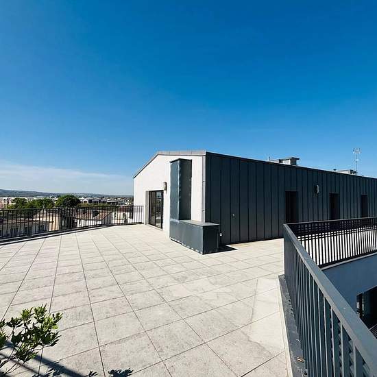 Au 10 rue d'Estienne d'orves, a 5 minutes à pied du centre ville et 10minuttes à pied du RER Au 6eme et dernier etage d'une residence recente de standing, rooftop de 5 pieces 96m2 lumineux comprenant: - une entrée avec placard - un sejour - une cuisine ouverte aménagé - un degagement - un wc pmr avec lave main - une salle de bain - 4 chambres dont une palcard - TERRASSE - Deux places de parking en sous sols Prestations: parquet, volets roulants, videophone, local velo DPE B GES C