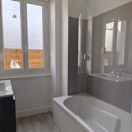Appartement type 5bis comprenant : entrée, séjour / salon, 3 chambres, 1 bureau, cuisine aménagée et équipée, wc, salle de bain - Grande terrasse - garage Loyer : 750 € Prov/charges : 90 € (entretien imm, tom, prov. pour eau avec sous-compteur indiv) Dépôt de garantie : 750 € Honoraires location : 396 € Honoraires état des lieux : 297 € (appartement disponible dès le 13/10/2025) - Les radiateurs électriques ont été remplacés début 2025