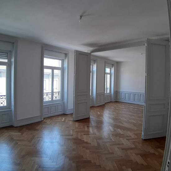 SAINT DIE, au 2ième étage (sans ascenseur), bel appartement bourgeois en TRES BON ETAT comprenant entrée avec placards, cuisine semi équipée et aménagée, 4 chambres, séjour de 22.70m² et salle à manger de 22.20m², salle de bains avec dégagement avec placards et buanderie, WC séparés et une pièce dressing. Une cave. Jardin communs aux 6 logements de l'immeuble Chauffage individuel GAZ Disponibilité immédiate Honoraires de 832,19 € TTC à la charge du locataire comprenant 226,96 € TTC pour l'état des lieux. Loyer de base 700.00 €/mois. Provisio...