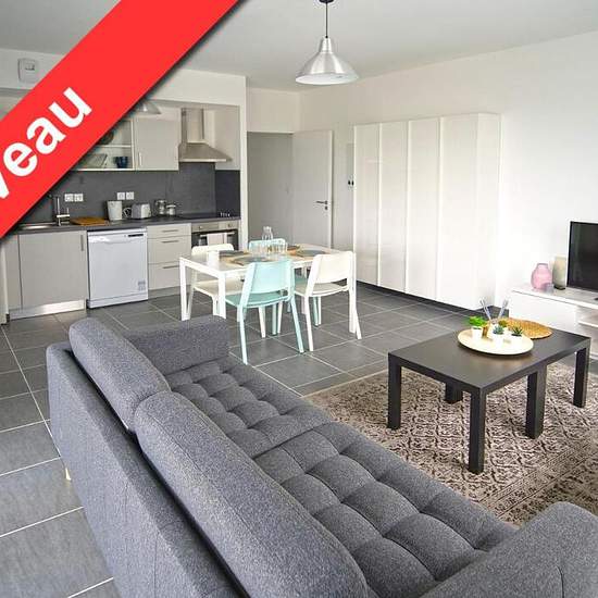 TYPE 5_MEUBLE_SAINT HERBLAIN - Appartement de Type 5 meublé comprenant : une entrée avec 4 placard, une cuisine aménagée et équipée donnant sur un salon/séjour, une terrasse, 4 chambres, 1 salle d'eau avec WC et 1 douche et WC séparés. Laverie en RDV de la copropriété. Local vélo sécurisé. Chauffage COLLECTIF. Les charges comprennent l'entretien des parties communes, le chauffage, l'eau, l'assurance habitation et internet. Bail solidaire. La résidence MYPARK bénéficie d'un emplacement idéal, à proximité immédiate des commodités, des transpor...