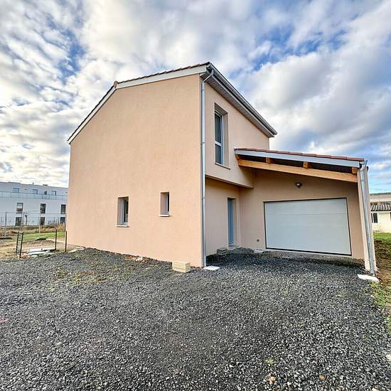 En exclusivité - Location, maison neuve de type T5 de 115 m² habitables, édifiée sur une parcelle de 829 m², avec garage et dépendances (cabanons / atelier), située en hyper-centre de Saint-Rambert à proximité immédiate de la place du marché et des commerces accessibles à pied. Au rez-de-chaussée, vous découvrirez un séjour lumineux avec cuisine ouverte, offrant un accès direct aux extérieurs et à la terrasse, une suite parentale comprenant un espace dressing et une salle de douche. WC séparé. Espace chaufferie avec accès direct au garage. À...