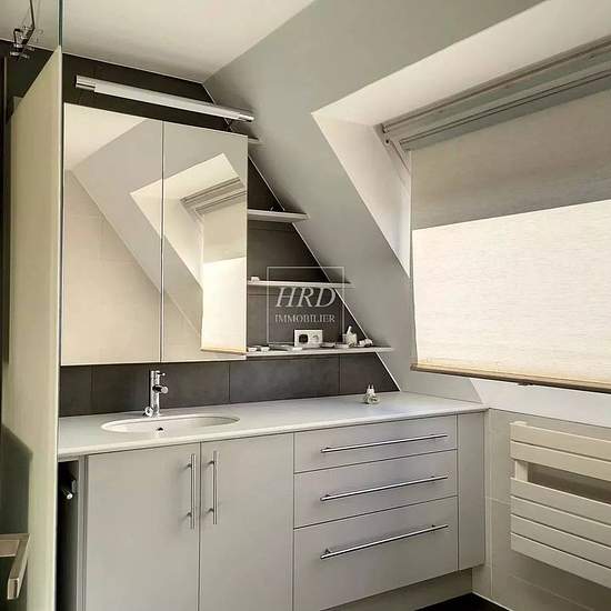 A proximité des institutions, très beau duplex de 5/6 pièces aux volumes contemporains, au dernier étage avec un balcon, d'une petite résidence. Il se compose au 1er niveau d'une entrée, d'un double séjour avec coin repas et accès au balcon orienté sud est, d'une cuisine spacieuse, meublée et équipée, d'une salle de bains, des toilettes séparés, d'une chambre. A l'étage: on retrouve une chambre parentale avec des rangements intégrés, une grande salle d'eau avec des toilettes, un espace mezzanine et 2 chambres. Au sous sol: un garage individu...