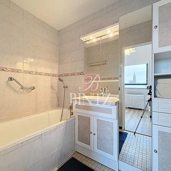 HYPER CENTRE – Duplex T5 Meublé – Vue Cathédrale – Parking et Cave Au 7ème étage d’une résidence avec ascenseur, ce duplex T5 meublé de 104,24 m² habitables (130 m² au sol) profite d’une exposition plein sud offrant une vue directe et dégagée sur la Cathédrale. Le premier niveau s’articule autour d’une entrée équipée de grands placards et d’un cellier. Le séjour bénéficie d’un balcon et d’une belle luminosité. La salle à manger est attenante à une cuisine indépendante, aménagée et équipée. Un WC séparé complète cet étage. L’espace nuit se si...