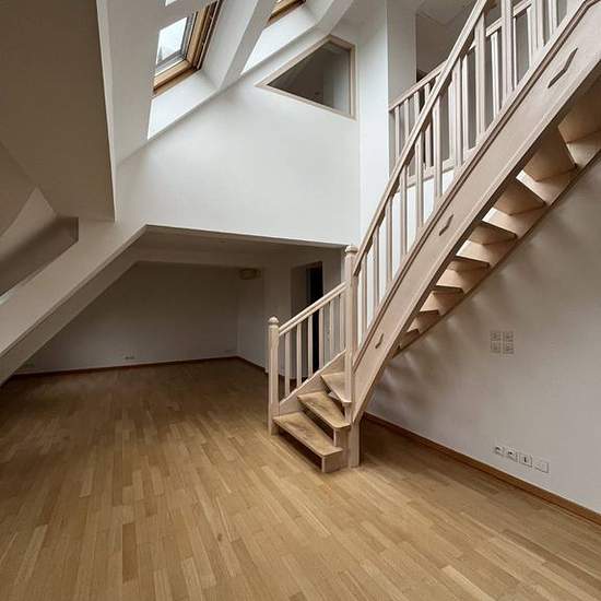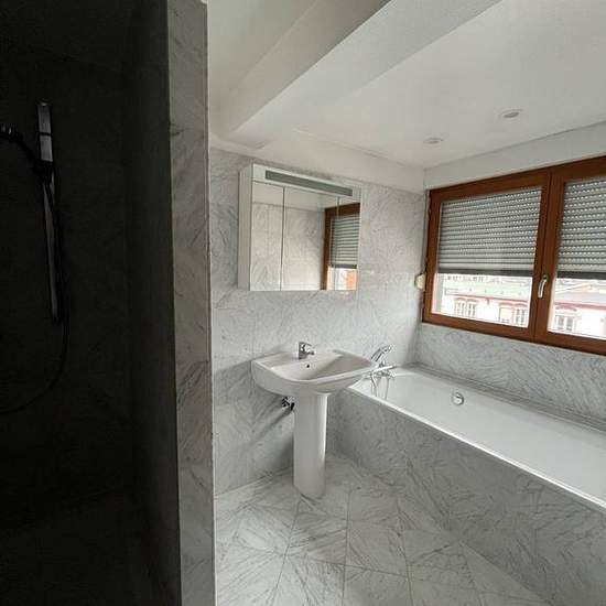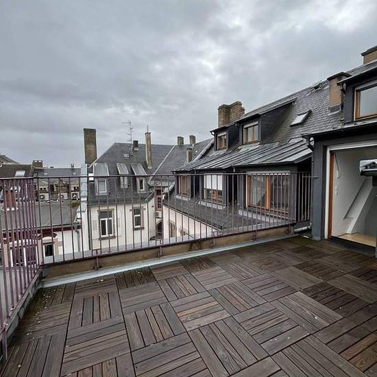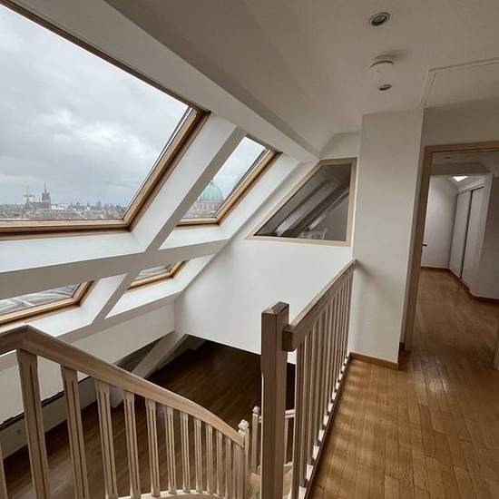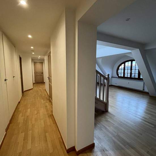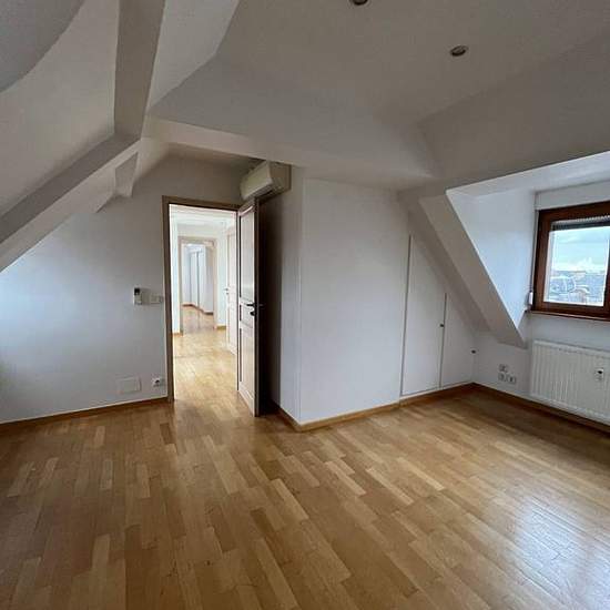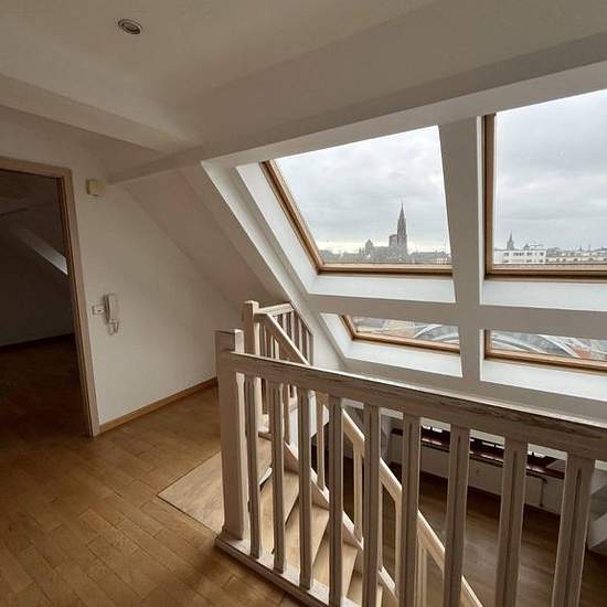 STRASBOURG - REPUBLIQUE Rue du Maréchal Foch, au 5ème étage avec ascenseur d'un immeuble cossu, très beau duplex 5 pièces de 145m². L'appartement est composé comme suit : Au rez de chaussée, une entrée avec placard, un très beau séjour avec plafond cathédrale, une cuisine équipée (four, plaques, hotte, frigo/congélateur, lave vaisselle et lave linge) donnant accès à une belle terrasse; deux chambres, une salle de bains (douche et baignoire) et deux wc. Au 1er étage, deux chambres avec placards aménagés, une salle d'eau et un wc. Chauffage et...