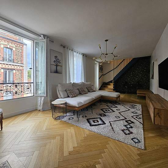 Location meublée . Bail meublé de 6 mois .Sans frais d'agence Découvrez ce magnifique duplex de 103,81 m², situé au 2? et dernier étage sans ascenseur d'un charmant petit immeuble ancien parfaitement entretenu. Idéalement situé à Suresnes, à seulement quelques pas de la Mairie de Suresnes et de ses nombreux commerces, cet appartement rare allie charme de l'ancien et confort moderne. Dès l'entrée, vous serez séduit par un séjour spacieux et baigné de lumière. La cuisine ouverte, entièrement aménagée et équipée, s'intègre parfaitement à la sal...