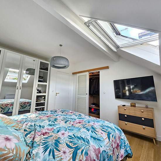 Location meublée . Bail meublé de 6 mois .Sans frais d'agence Découvrez ce magnifique duplex de 103,81 m², situé au 2? et dernier étage sans ascenseur d'un charmant petit immeuble ancien parfaitement entretenu. Idéalement situé à Suresnes, à seulement quelques pas de la Mairie de Suresnes et de ses nombreux commerces, cet appartement rare allie charme de l'ancien et confort moderne. Dès l'entrée, vous serez séduit par un séjour spacieux et baigné de lumière. La cuisine ouverte, entièrement aménagée et équipée, s'intègre parfaitement à la sal...