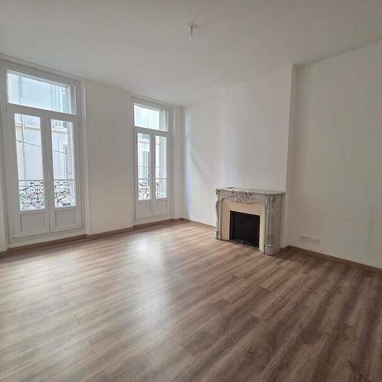 Dans un immeuble ancien, au 1er étage avec ascenseur, appartement traversant faux type 5, d'une superficie de 137 m² environ, comprenant : entrée, salon / séjour, 3 chambres, cuisine aménagée et équipée (plaque + hotte), 2 salles d'eau + 1 wc séparé. Chauffage : chaudière gaz Loyer par mois charges comprises : 1237,00 € Dont 125,00 € de provisions pour charges avec régularisation annuelle (charges immeuble, ordures ménagères, entretien climatisation et chaudière) Dépôt de garantie : 1112,00 € Honoraires charge locataire : 1227,15 € Dont 409,...