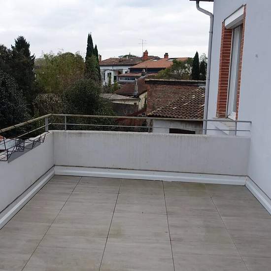 Toulouse Saint Agne (rue Aristide Briand 31400) à louer à compter du 30.01.2026, appartement de type T5 "Vide" en duplex au sein d'une mini copropriété. Situé au 1er/2ème et dernier étage. Beaux volumes de 90m² hab dont 74,22m² en loi Carrez. L'appartement est en très bon état, rénovation complète récente. Le 1er niveau est composé d'un salon avec une cuisine US aménagée et équipée et accès à une véritable terrasse, deux chambres dont une avec terrasse, SDE avec WC. Au niveau supérieur le dégagement offre un espace bureau, deux autres chambr...