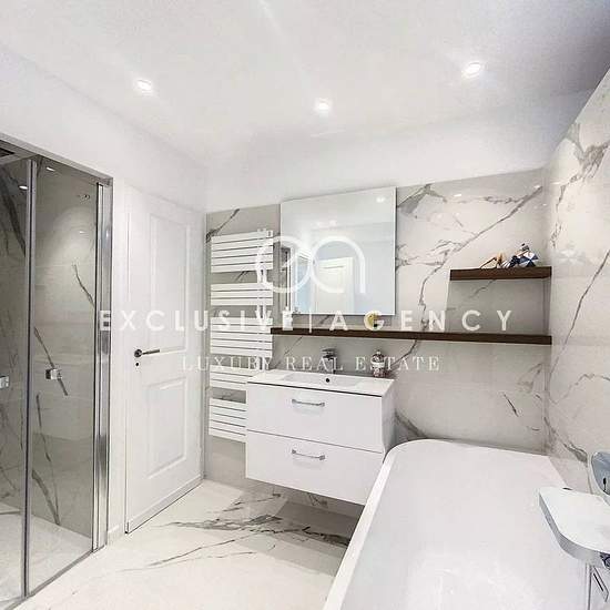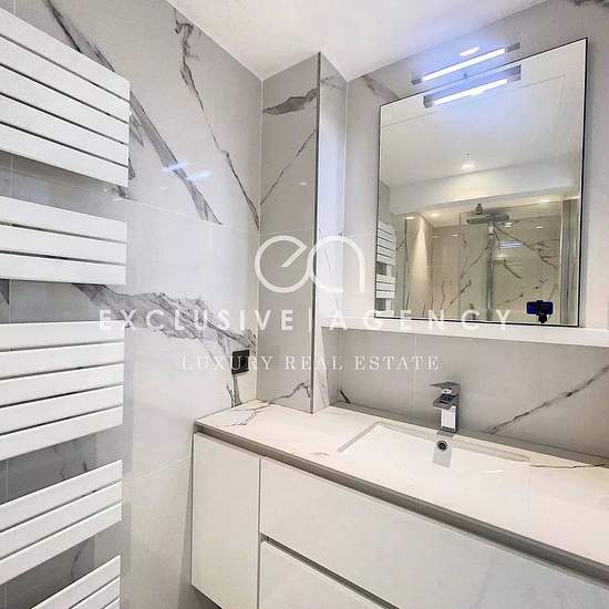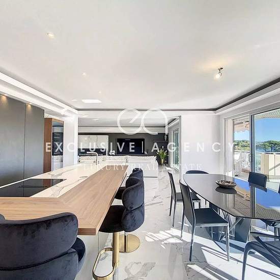EXCLUSIVITÉ GOLFE JUAN MARINA résidence bénéficiant d'une situation privilégiée en bord de mer, offrant un cadre de vie exceptionnel, située entre le Cap d'Antibes et le Palm Beach de Cannes. Les plages de sable se trouvent juste en face de la résidence. Résidence de Prestige bénéficiant d'une piscine à débordement sur le toit avec solarium, Jacuzzi, salle de sport, sauna, hammam et surveillance 24h / 24. Location meublée à l'année d’un appartement de 5 pièces de 173m² entièrement rénové en 2023 et offrant de luxueuses prestations, avec asce...