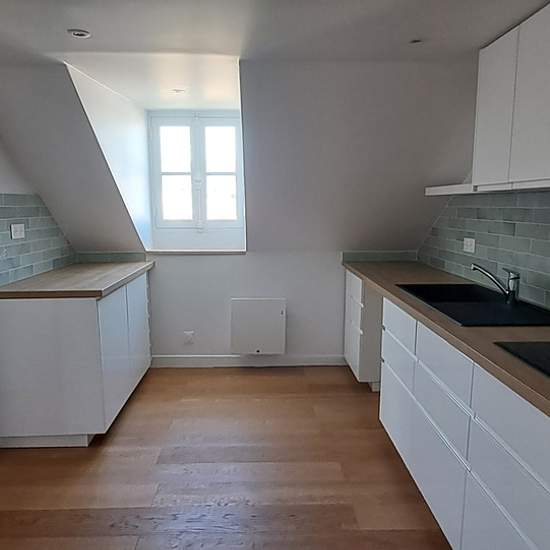 Nous vous proposons à la location un très bel appartement entièrement refait à neuf, au 4ème et dernier étage sans ascenseur. Très bien situé, quartier Notre Dame, Boulevard de la Reine. Modernité et charme de l'ancien sauront vous séduire. Appartement de 102.45 m2 'Loi Boutin' et 123.14 m2 utiles, comprenant une entrée, une grande cuisine entièrement aménagée, un séjour double très lumineux, une salle de bains, 3 belles chambres avec rangements, dont 2 avec cheminées décoratives, un dégagement pouvant être utilisé en bureau, une salle de do...
