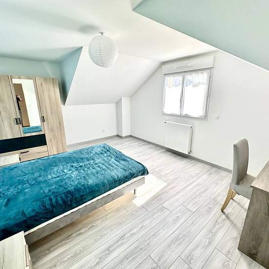 Au rez-de-chaussée : Un séjour donnant de plain pied sur un jardin d'environ 52m², une cuisine ouverte aménagée et équipée, WC indépendants. Au premier étage : 2 chambres, un bureau de 8m² ou chambre supplémentaire, une salle de bains, WC. Au deuxième étage : 2 chambres, salle d'eau, WC. Un emplacement de parking extérieur sur parcelle LOCATION MEUBLEE, internet compris IDEAL COLOCATION
