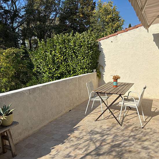 AIX LES MILLES Située dans le petit hameau de la mérindole, à quelques minutes du pole d'activités et de la gare TGV, maison de 113 m² sur deux niveaux, comprenant au 1er étage : un séjour cheminée et cuisine ouverte entièrement équipée, donnant sur une belle terrasse avec vue sur la verdure, deux belles chambres, salle de bains et wc. au rdc : un espace bureau / salle de jeu, une chambre d'appoint avec sa salle d'eau et wc, cave à vins, buanderie cellier. La maison dispose de deux places de parkings et d'un jardin privatif. Environnement tr...